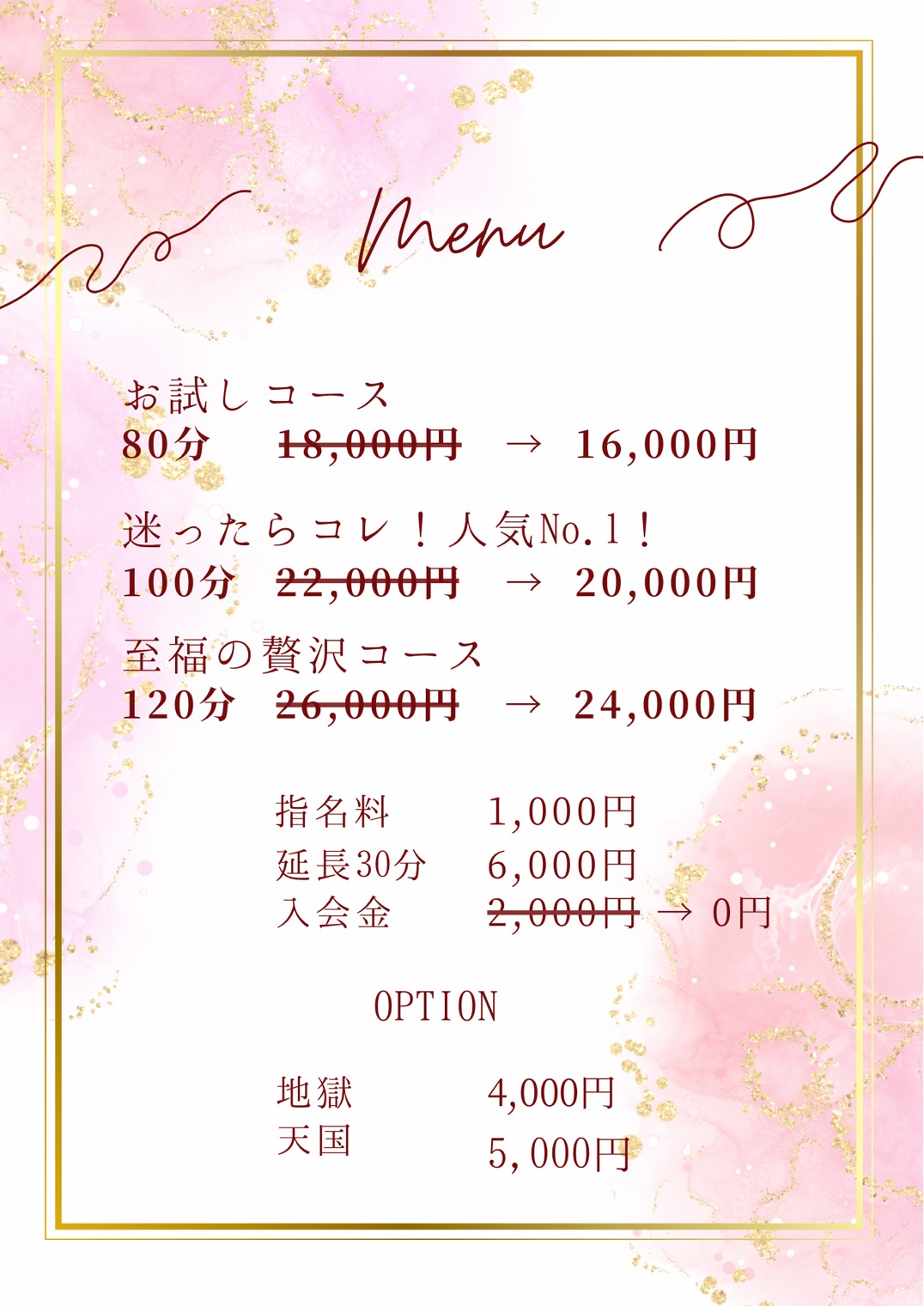| 80分 | 18,000円→OPEN割引16,000円 |